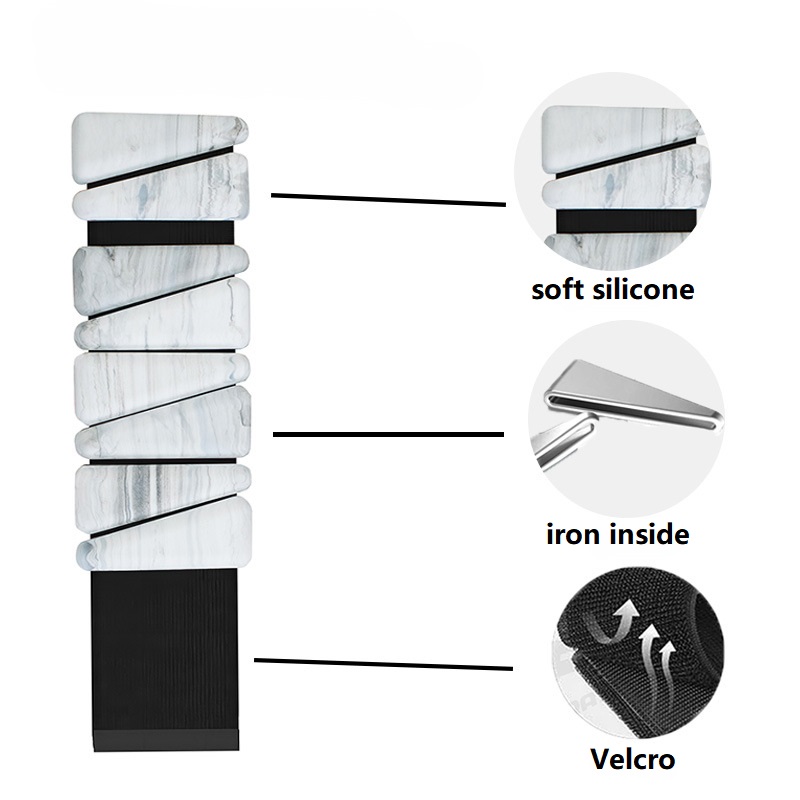 - Design: Segmented flexible structure, adjustable Velcro strap, non-slip silicone surface