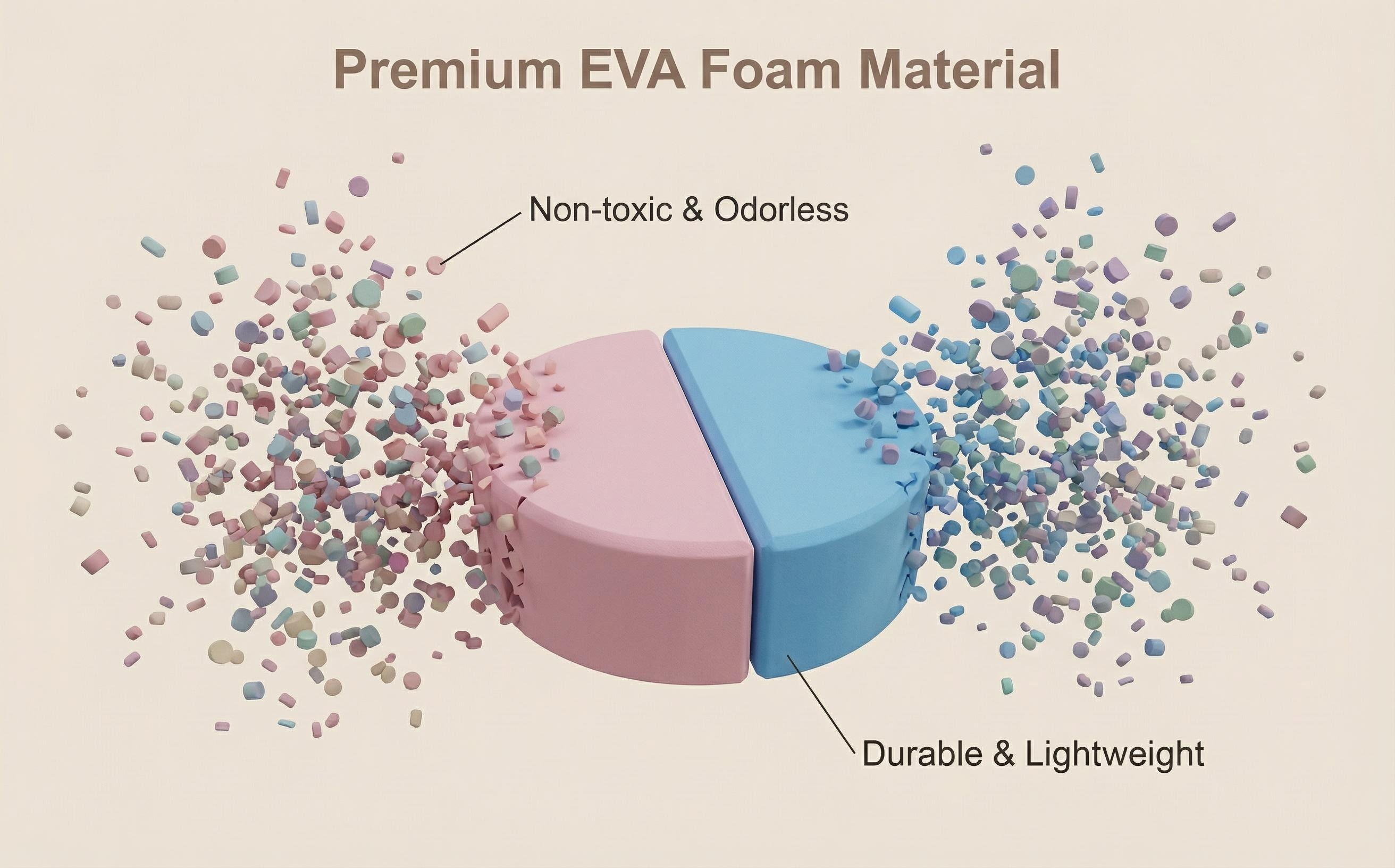 Made of 100% non-toxic, eco-friendly high-density EVA foam with excellent shock absorption and resilience.