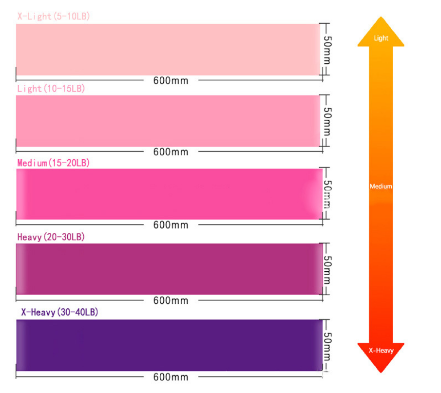Red (Heavy): High resistance, suits muscle strength building, glute hypertrophy, core training and intermediate-level fat loss workouts