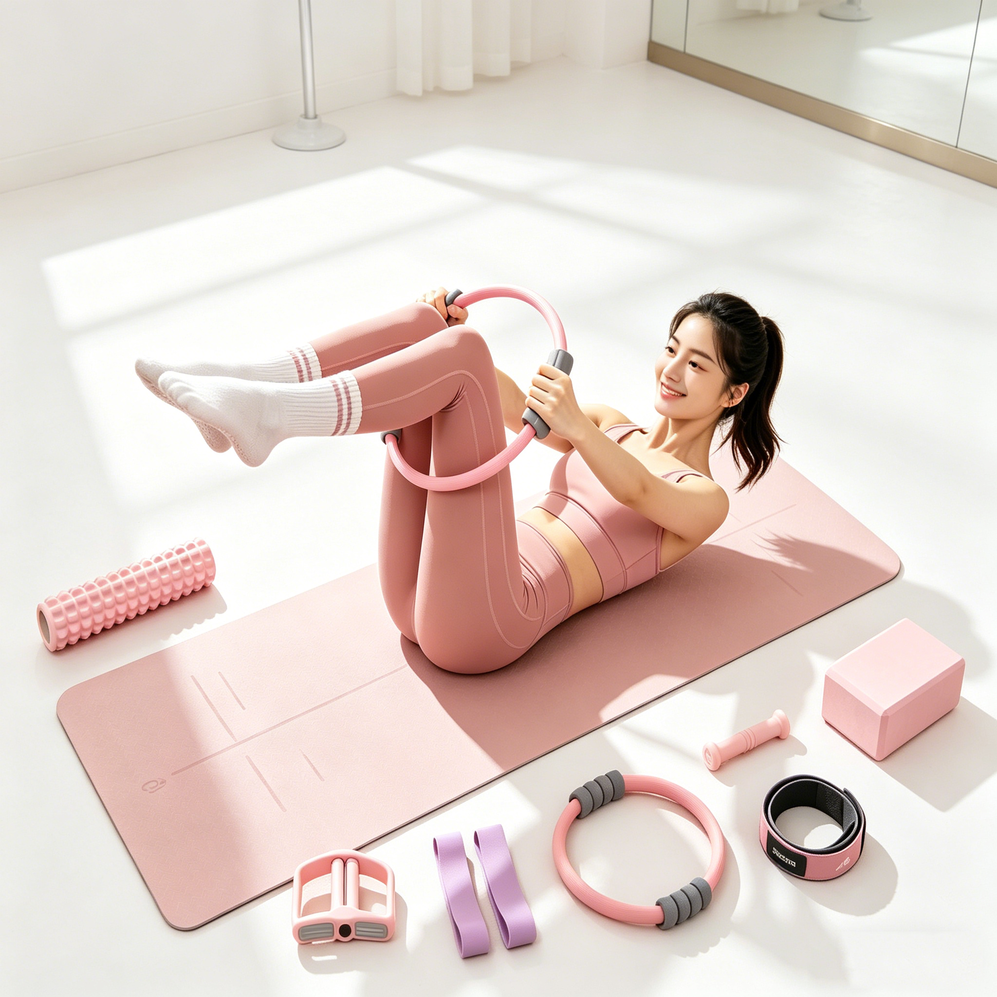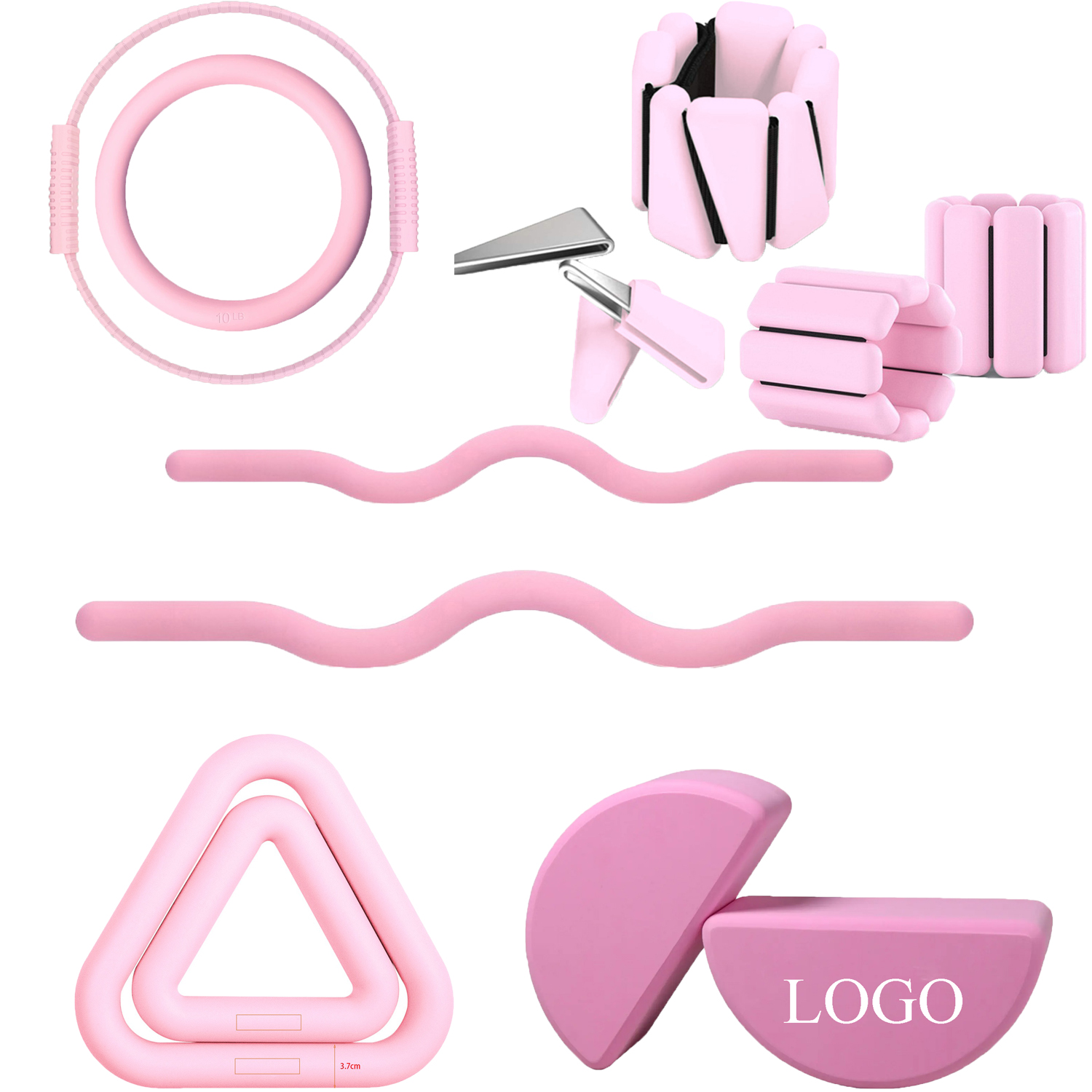 Adorable soft pink appearance, skin-friendly and durable foam material, safe and comfortable to use. This complete kit includes Pilates ring, leg inner muscle clip, shoulder & back correction yoga stick, triangular yoga loop, weighted fitness wrist bands, resistance exercise ring and high-density yoga blocks.